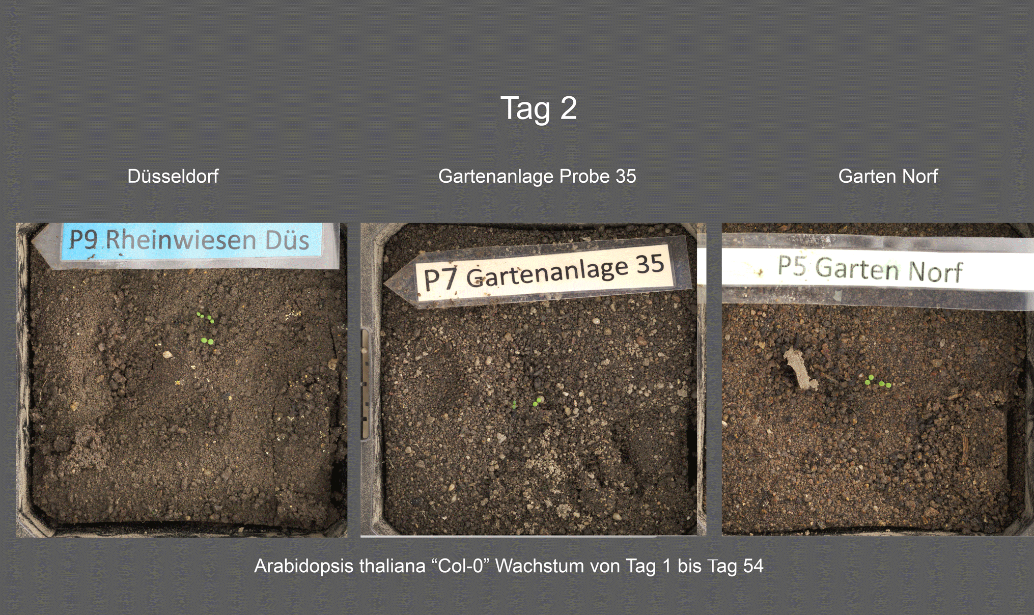 In this project, A. thaliana "Col-0" seeds were grown on various soils that had been collected throughout NRW and which differed in their heavy metal content. An highly unequal growth was observed and compared.